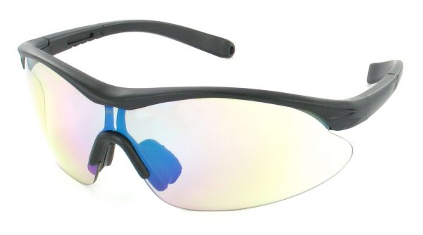 Melns rāmis . Nedaudz tonēts , caurspīdīgs (0. kategorijas) objektīvs ar zibspuldzes spoguļa apdari . Lēcas bez kropļojumiem . Triecienizturīgas, neplīstošas polikarbonāta lēcas atbilst standartam EN166F . Neslīdoši deguna spilventiņi . Regulējama garuma kājiņas. UV400 aizsardzība.