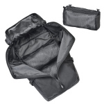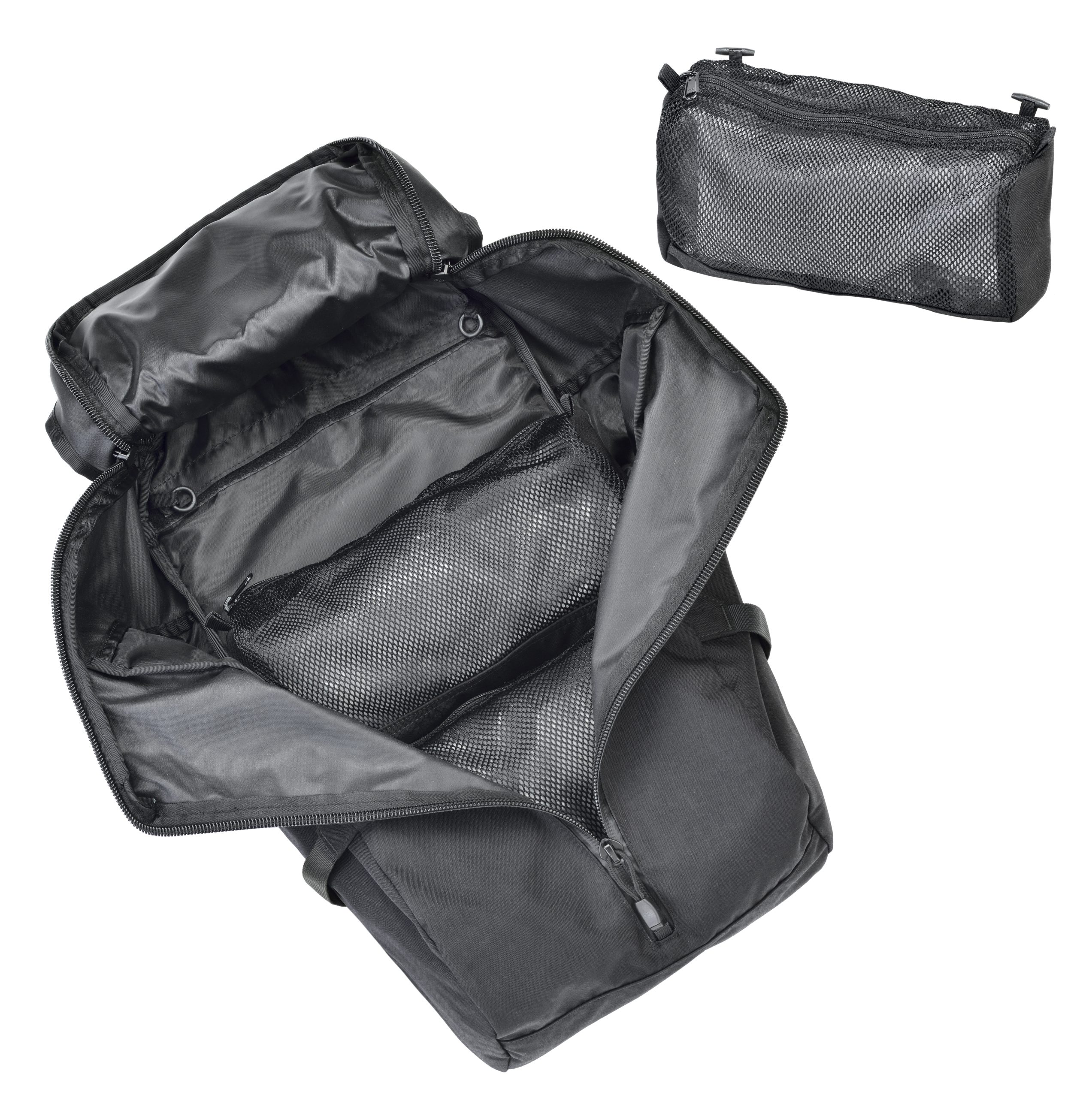 Tam ir vēl viena augšējā atvere, ko aizsargā ūdensizturīgs atloks. Iekšpusē ir trīs noņemamas kabatas personīgo mantu glabāšanai.