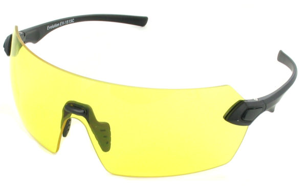 Melnas kājiņas. Dzeltens (0. kategorija) objektīvs . 1. klases optiskās kvalitātes lēcas . Bezmalas (nav rāmja vai tilta, kas apgrūtinātu redzamību) . 10 bāzu izliekums maksimālai acu aizsardzībai . Regulējami deguna spilventiņi . Izciļņu kājiņas pie deniņiem (aizdare) . Hidrofobas (ūdens) un oleofobiskie (eļļas) lēcu pārklājumi atgrūž ūdeni, putekļus, eļļu, pirkstu nospiedumus, traipus un netīrumus . Pretskrāpējuma pārklājums lēcām . Viegls, lai valkātu visu dienu . Triecienizturīgas, neplīstošas polikarbonāta lēcas (atbilst EN166) . Plāna profila kājiņas . UV400