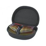 Komplektā ar tīrīšanas drānu, mīkstu pārnēsāšanas maciņu un cietu maciņu ar nodalījumiem rezerves lēcām