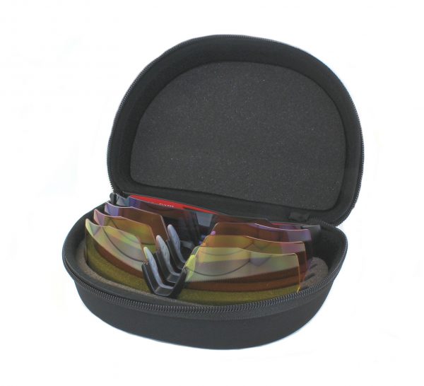 Melni sarkanas kājiņas . 4 maināms lēcu komplekts ar pelēkām (3. kat.), dzeltenām (1. kat.), oranžām (1. kat.) un purpursarkanām (2. kat.) lēcām . 1. klases optiskās kvalitātes lēcas ,bez apmalēm (bez rāmja)  neaizsegtai redzamībai ) . Regulējami deguna spilventiņi . Divkāršas  TR90 neilona kajiņas ir īpaši izturīgas, bet īpaši vieglas un elastīgas, lai nodrošinātu ilgstošu valkāšanas komfortu . Pilnīga ietīšana, kas nodrošina pilnīgu acu aizsardzību . Rāmis un objektīvs kopā sver tikai 28 g (iespējams, vieglākās šaušanas  brilles) . “WP3” lēcu pārklājumi: