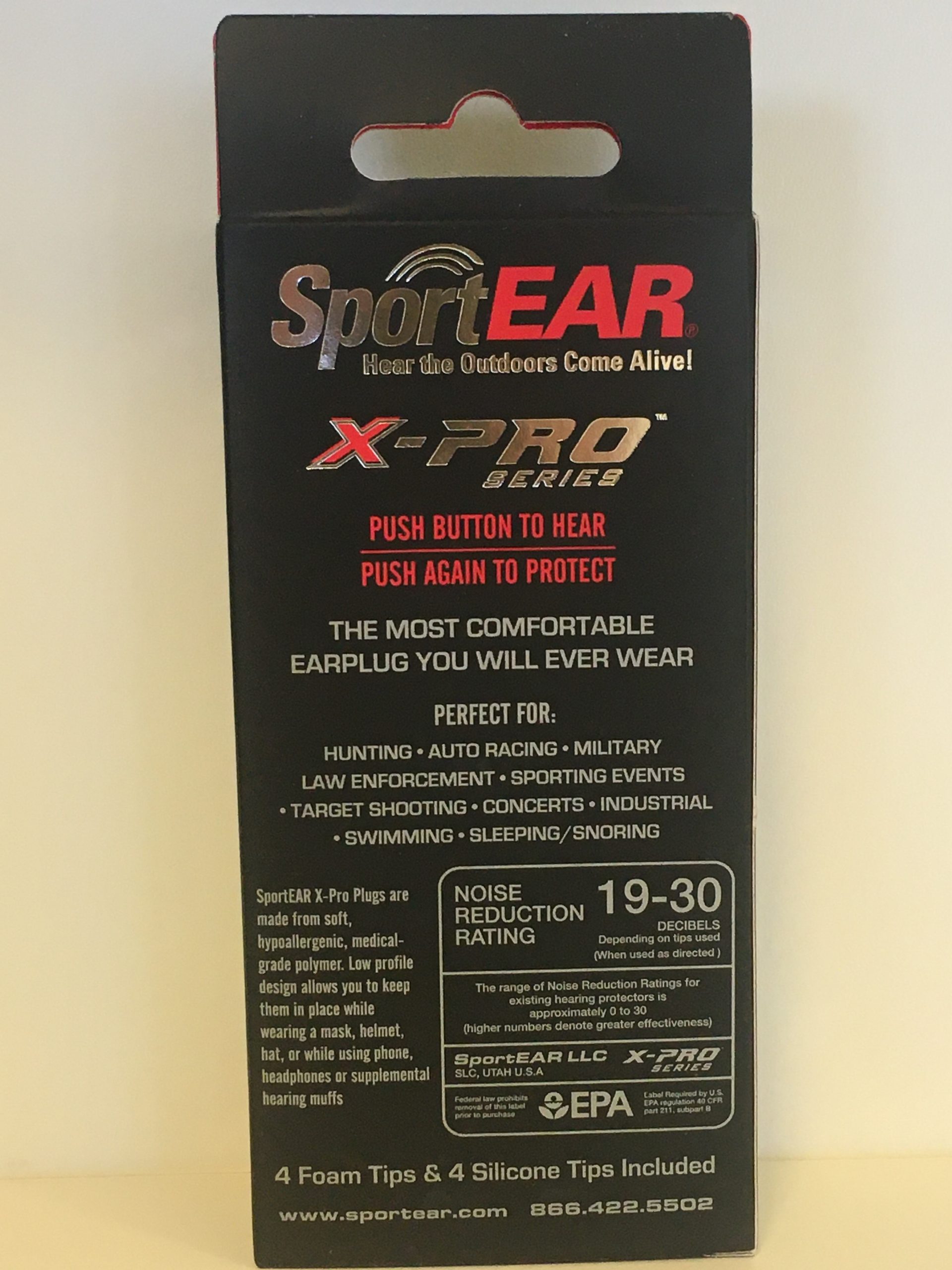 X-Pro spraudņi ir izgatavoti no mīksta, hipoalerģiska, medicīniskās kvalitātes polimēra. Zema profila dizains ļauj tos noturēt vietā, valkājot masku, ķiveri, cepuri vai lietojot tālruni, austiņas vai papildu dzirdes aizsargus. X-Pro ausu aizbāžņi ir mazgājami un atkārtoti lietojami, kas palīdz jums izvairīties no apgrūtinājumiem un papildu izdevumiem, jo pastāvīgi jāmaina vienreizējās lietošanas ausu aizbāžņi. Pielietojums ietver: medības, autosacīkstes, militārās, tiesībaizsardzības, sporta pasākumus, šaušanu , koncertus, rūpniecisko, gulēšanu/krākšanu.