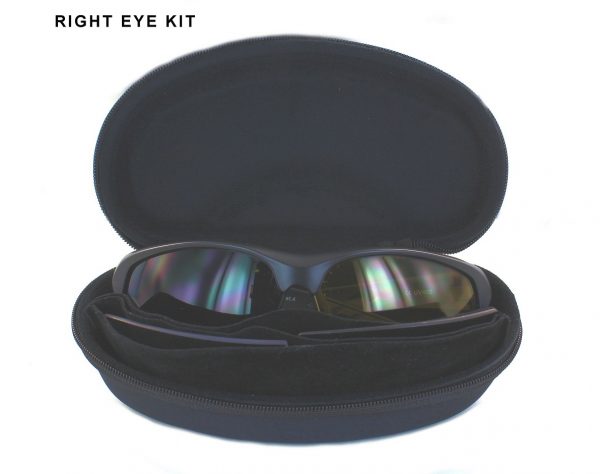 Kreisās acs dominējošā komplekta komplektācijā ir tumša 4. kategorijas lēca uz kreiso aci un skaidra un dzeltena lēca labajai acij.