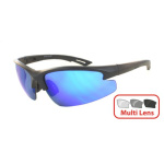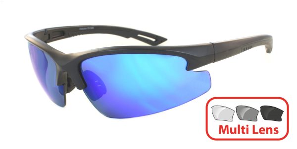 Matēti melns rāmis .Maināms 3 lēcu komplekts ar pelēkām lēcām ar zilu spoguļa apdari, oranžām un dzeltenām lēcām . 1. klases optiskās kvalitātes lēcām ,Viegls, bet īpaši izturīgs TR90 rāmis . triecienizturīgas un neplīstošas polikarbonāta lēcas kas pilnībā pārklājas, lai nodrošinātu maksimālu acu aizsardzību un lai novērstu vēju un atspīduma ietekmi. Neslīdoši deguna spilventiņi un augstas saķeres kājiņas . Vienkārša un ātra lēcu maiņa . UV400 aizsardzība.