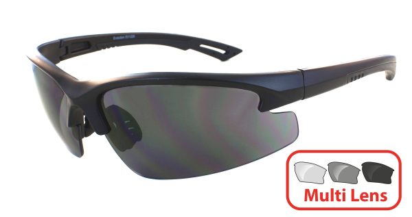 Matēti melns rāmis . Maināms 3 lēcu komplekts ar pelēkām, oranžām un dzeltenām lēcām . 1. klases optiskās kvalitātes lēcas . Viegls, bet īpaši spēcīgs TR90 rāmis . Triecienizturīgas un neplīstošas polikarbonāta lēcas . Pilnīga ietīšana, lai nodrošinātu maksimālu acu aizsardzību un aizsargātu no vēja un atspīdumiem . Neslīdoši deguna spilventiņi un augstas saķeres kājiņas . Vienkārša un ātra lēcu maiņa . UV400 aizsardzība.